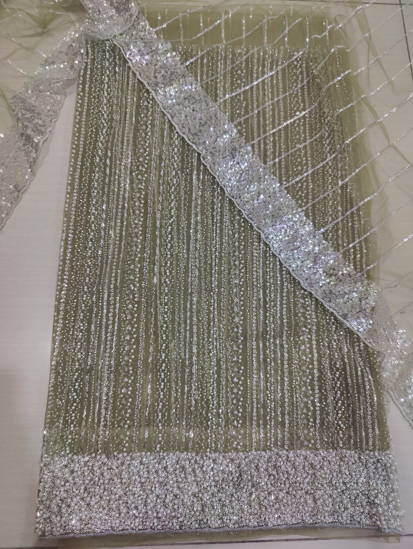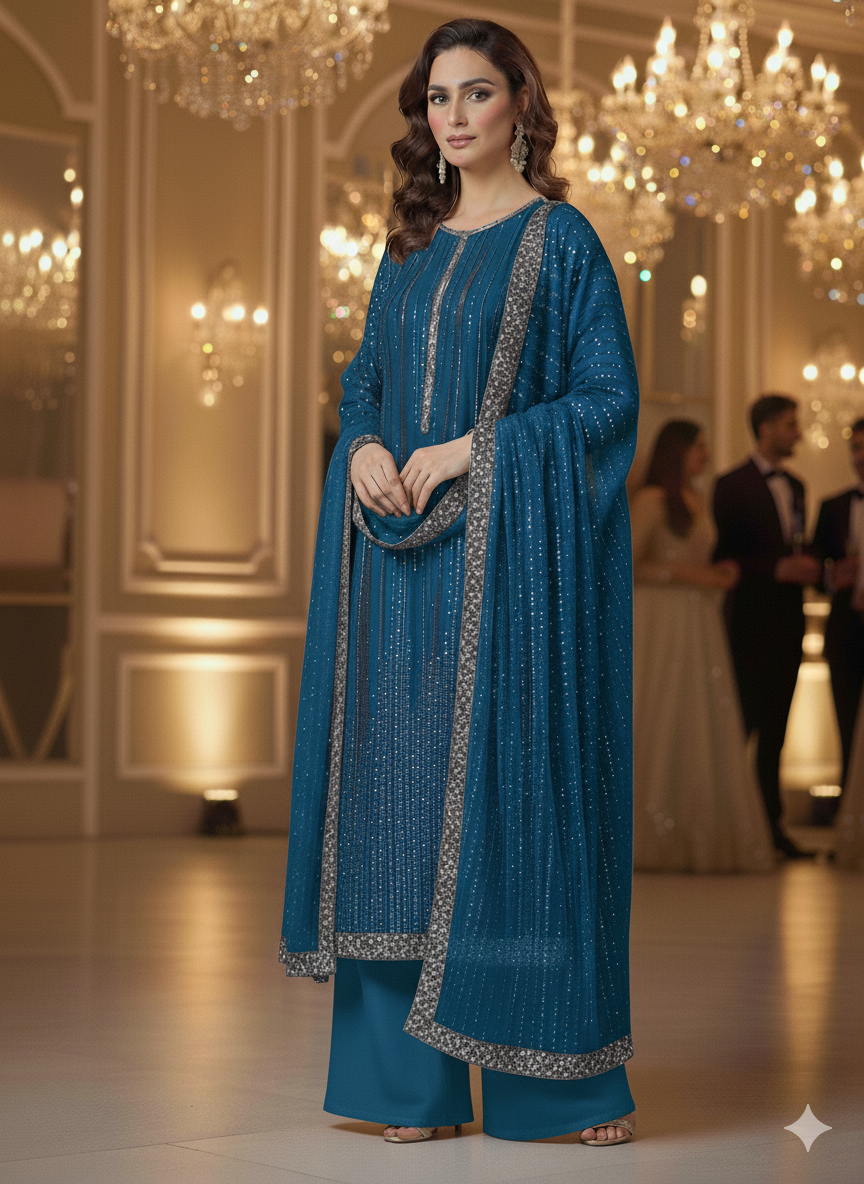Elevate your festive wardrobe with this 2-piece unstitched ensemble, crafted from premium NET and adorned with intricate Turkish Cutdana handwork. The rich texture and artisan detailing make it a standout choice for formal occasions, weddings, or evening wear.