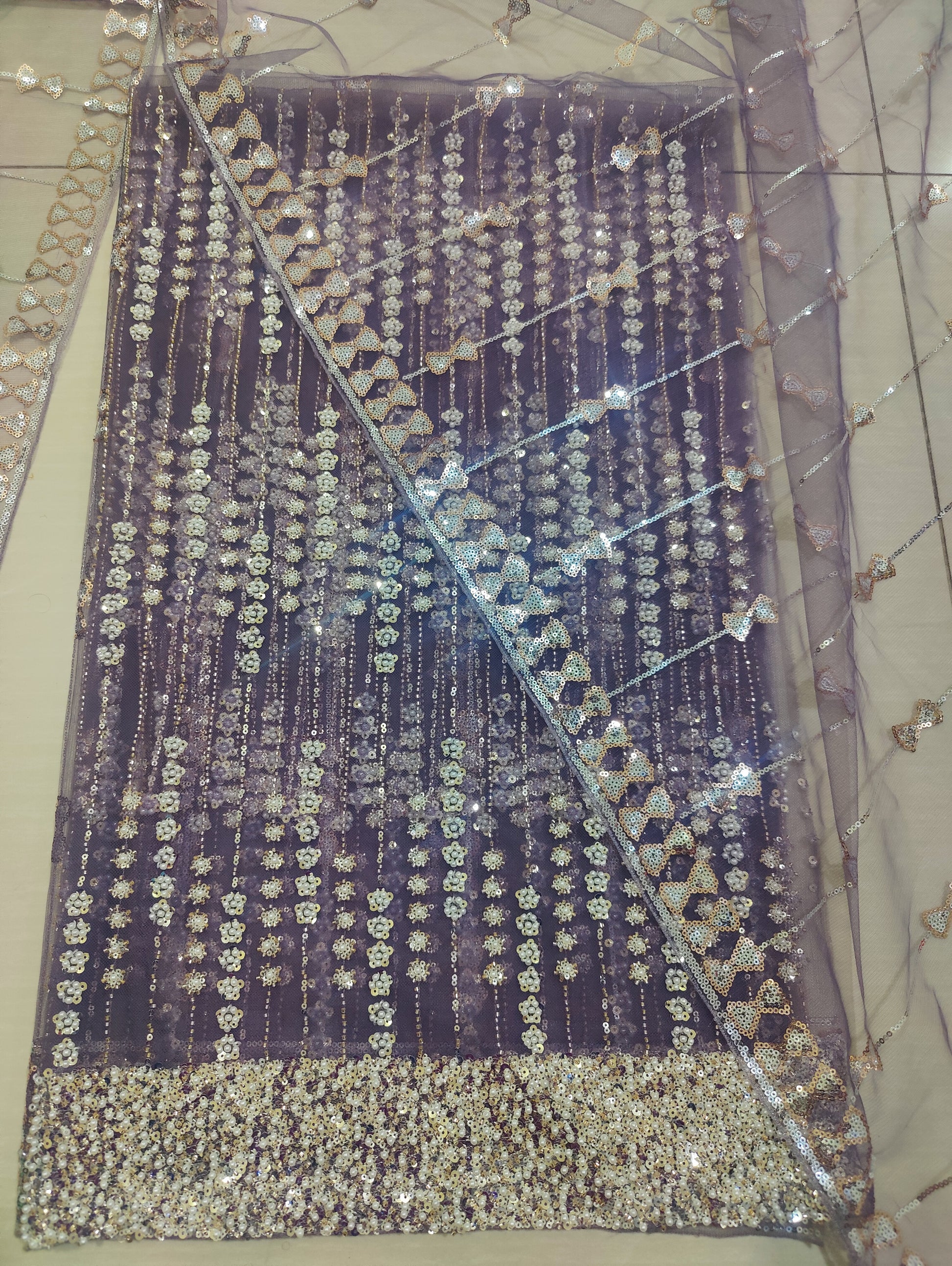 • Front: Full Heavy Turkish Cutdana Work (55" Length)