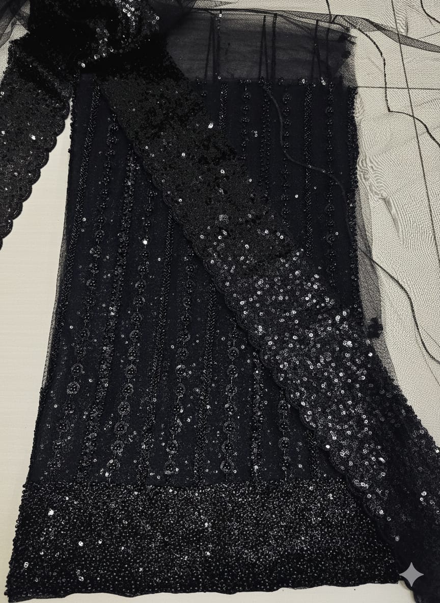 • Front: Full Heavy Turkish Cutdana Work (55" Length)